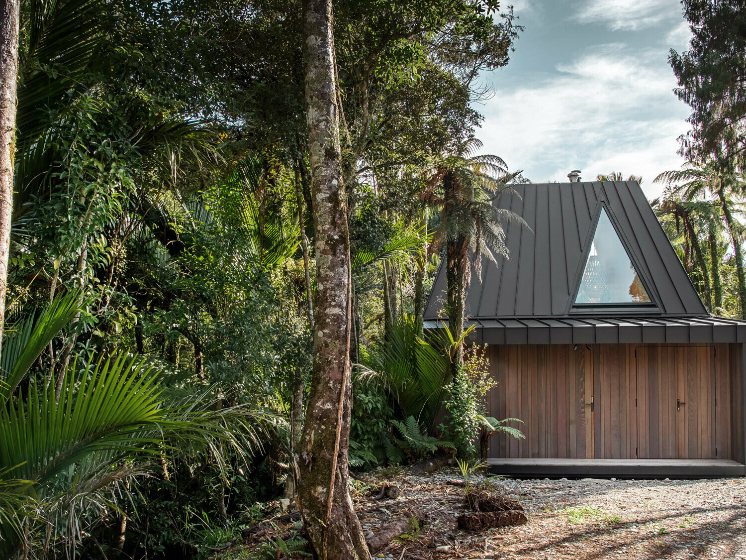 Novozélandská architektonická firma Fabric se věnuje širokému spektru typů budov, vytváří na míru přizpůsobené prostory, které se dotýkají lidí. Jeden příklad je ukrytý mezi palmami Nikau na západním pobřeží Nového Zélandu: Bivak Punakaiki, obklopený teplým dřevěným jádrem a pláštěm z hliníku PREFA, stírá hranice mezi vnitřkem a vnějškem.