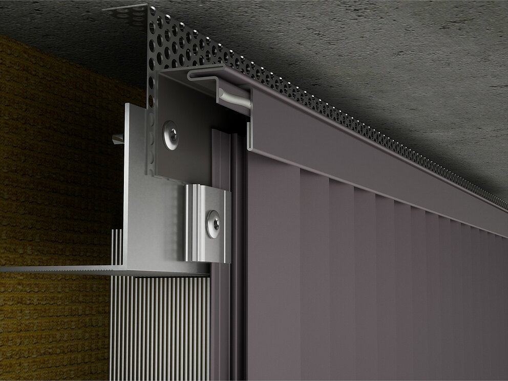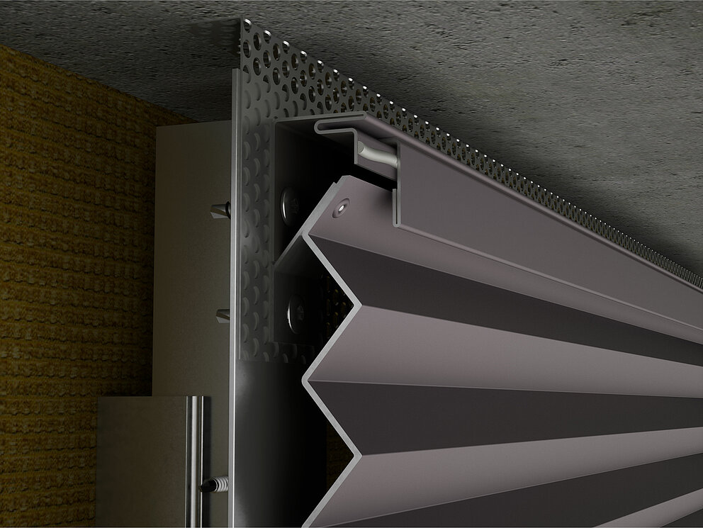 Aby byla fasáda řádně odvětrávána, je nutné v horním ukončení vytvořit odvětrací otvor. U odvětrávacího otvoru (např. podhled střechy) namontujte děrovaný plech s ohybem 90° pro zvýšení tuhosti.