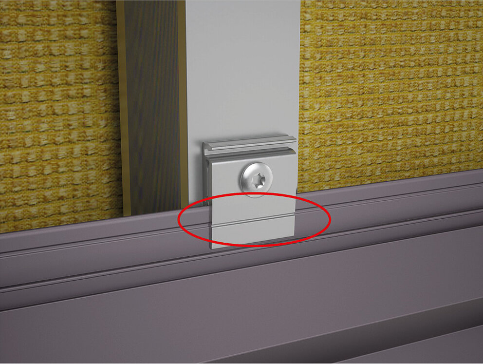 Ujistěte se, že příponka na nosný profil dosedá vždy celou plochou a že zapuštěné rýhy příponky a profilu jsou navzájem přesně zarovnány.