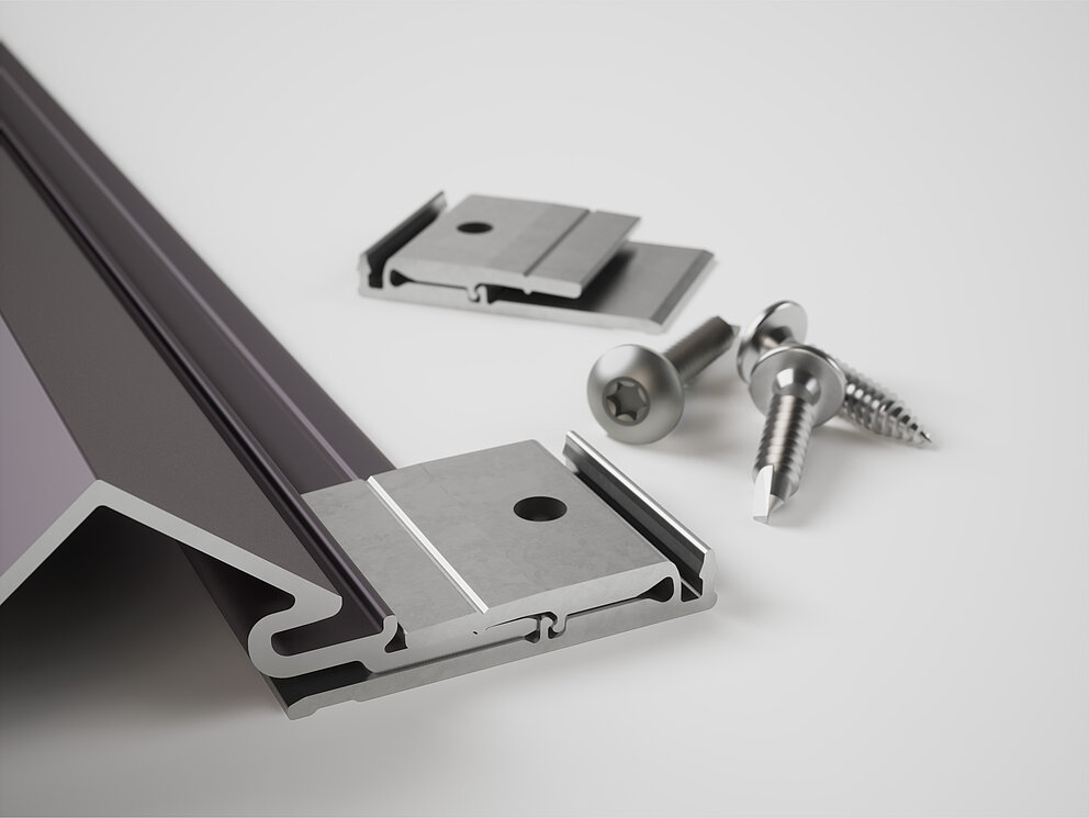 Upevňovací vrut se zašroubuje předlisovaným otvorem příponky, která umožňuje montáž lisovaných profilů, při níž je zohledněna i případná dilatace.