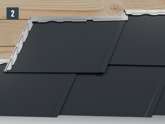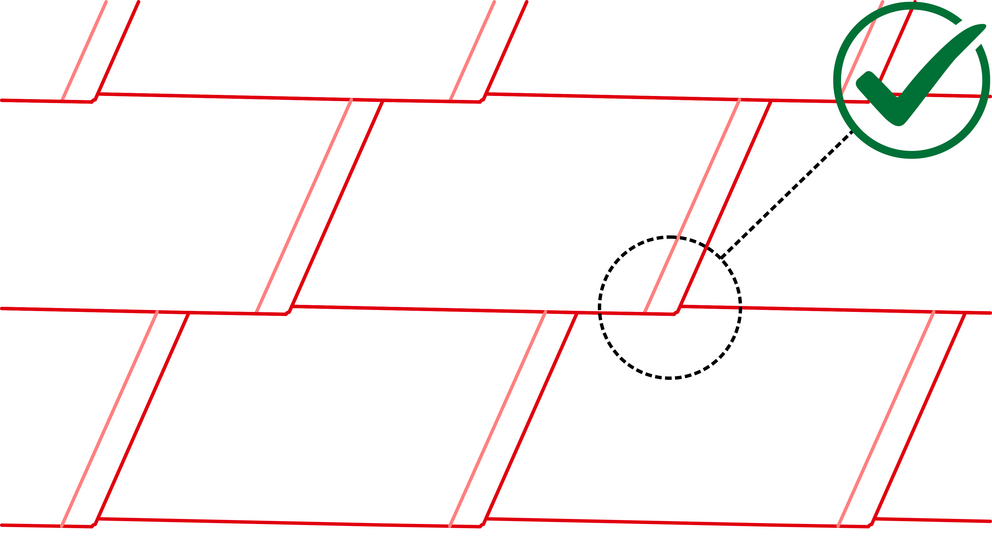 Při pokládce falcovaných šindelů DS.19 se postupuje zprava doleva a pokládka má být prováděna v horizontálních řadách.