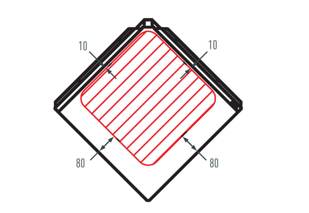 Pokud budete na fasádu něco montovat (např. svítidla), dbejte při montáži na přípustnou montážní oblast fasádní šablony 44 × 44. Pokud nelze oblast možného umístění dodržet, je třeba použít nafalcovanou montážní podložku.