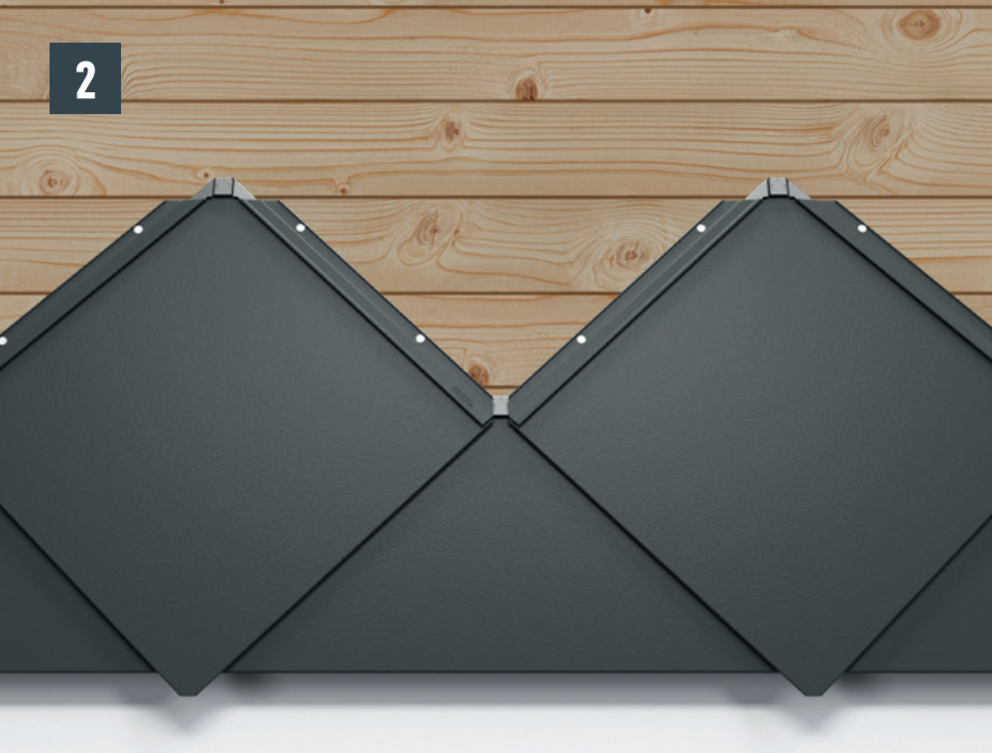 Kotvení každé fasádní šablony 44 × 44 se provádí přímo přes předlisované kotevní otvory čtyřmi dodanými vroubkovanými hřebíky 2,8/25.