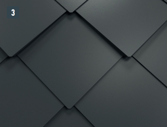 • Pootevřete lehce horní falc nové fasádní šablony 44 × 44, zasuňte ji směrem nahoru a upevněte (obr. 3).