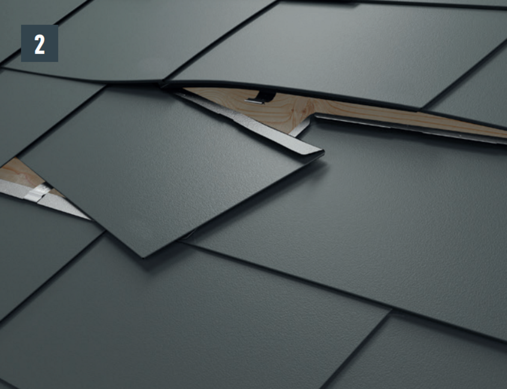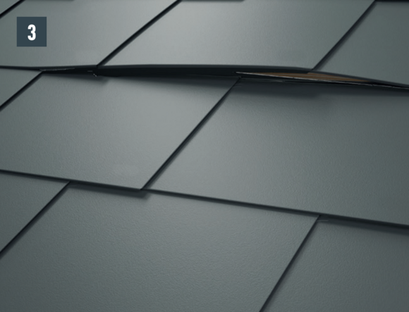 • Usaďte nový šindel na místo, zavlékněte příponku a pečlivě upravte falce do původního stavu (obr. 3).