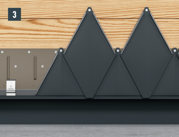 Kotvení každé věžovky se provádí přímo předlisovaným kotevním otvorem pomocí dodaného vroubkovaného hřebíku 2,8/25.