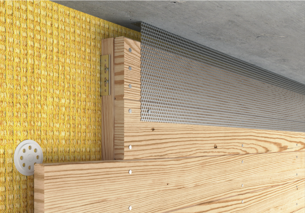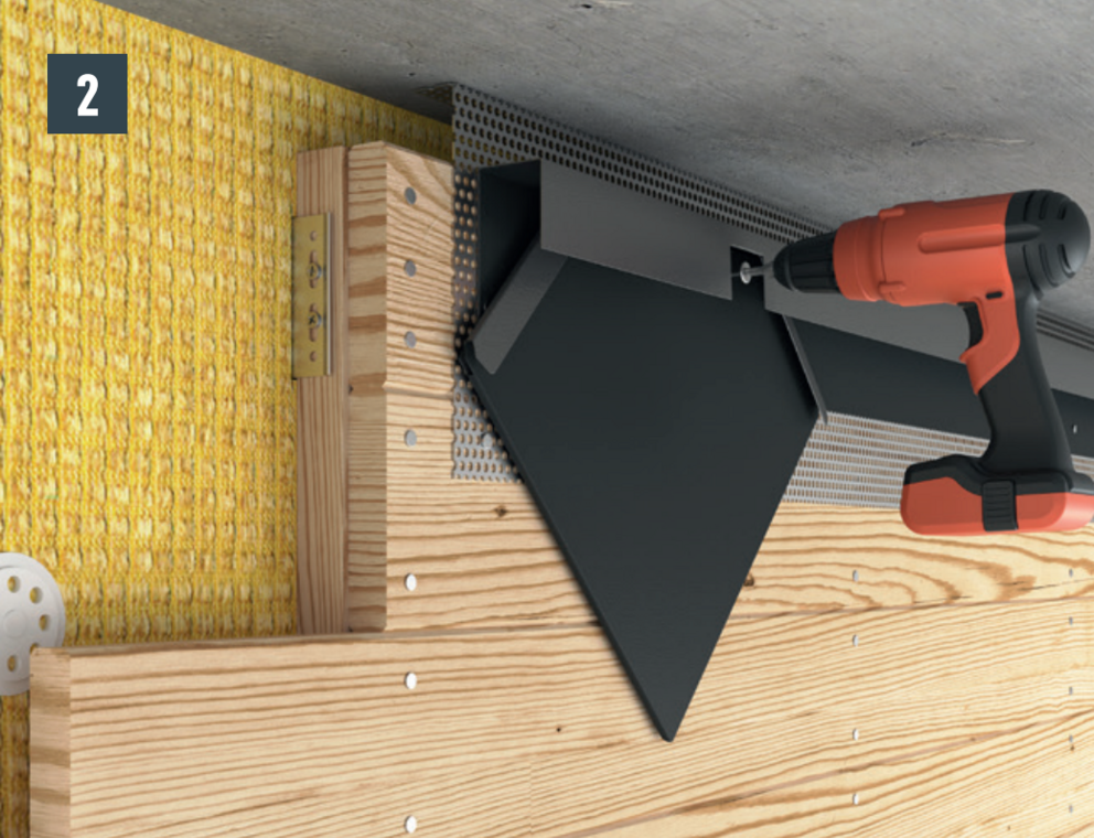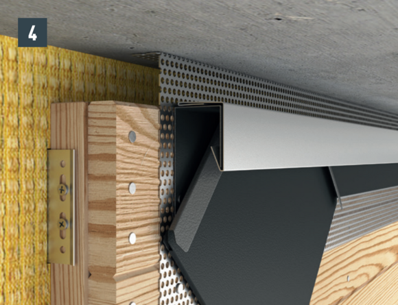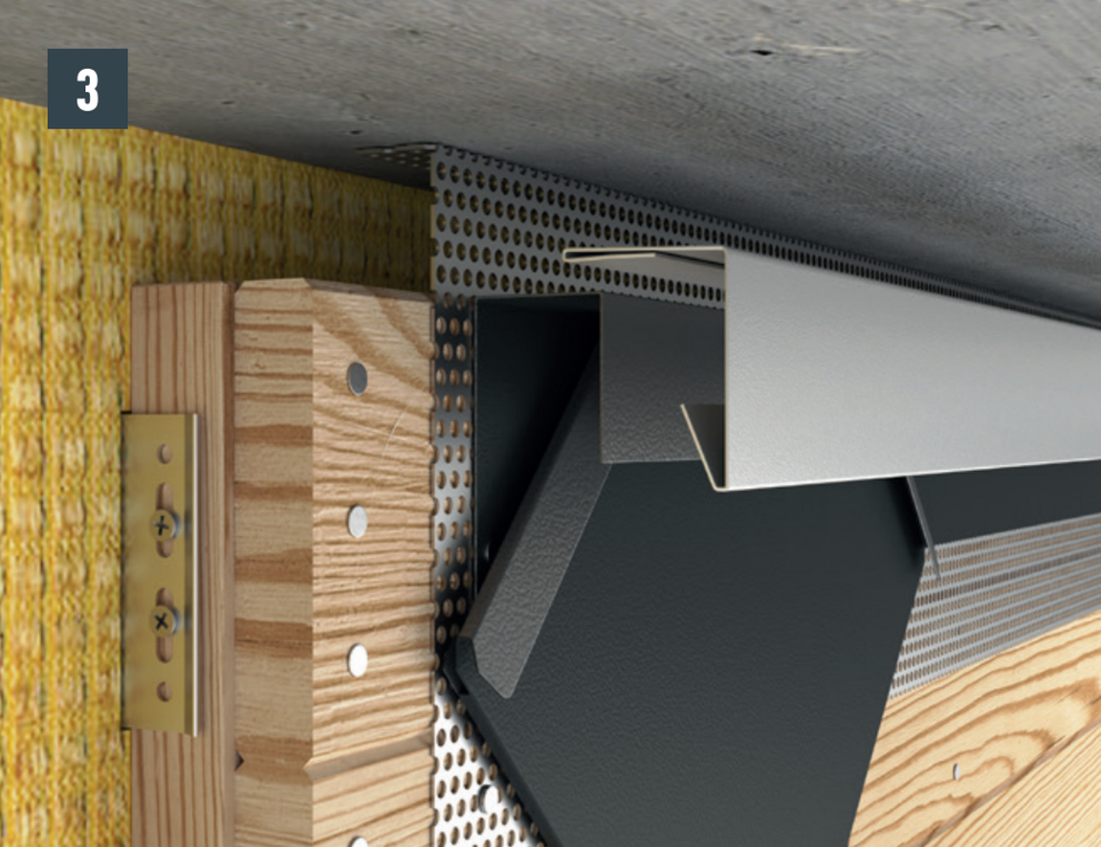 Aby byla fasáda řádně odvětrávána, je nutné v horním ukončení vytvořit odvětrací otvor. U odvětrávacího otvoru (např. podhled střechy) namontujte děrovaný plech s ohybem 90° pro zvýšení tuhosti.