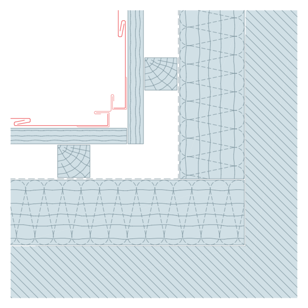 Následně se přiloží rohový úhelník a na obou stranách se upevní přehnutím na ukončovacích profilech.