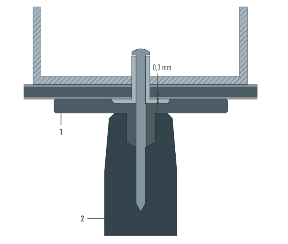Ke kotvení hliníkových kompozitních desek PREFABOND pomocí balkonového nýtu PREFA je třeba použít odpovídající plochou nýtovací špičku pro balkonový nýt PREFA.