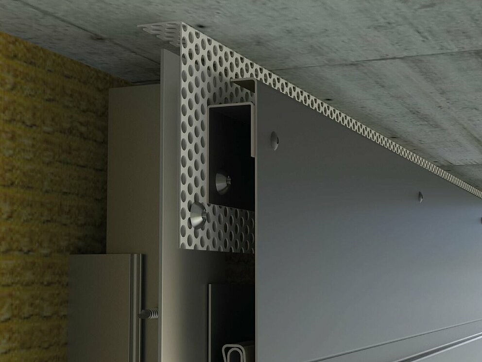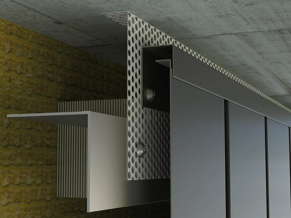 Aby byla fasáda řádně odvětrávána, je nutné v horním ukončení vytvořit odvětrací otvor. U odvětrávacího otvoru (např. podhled střechy) namontujte děrovaný plech s ohybem 90° pro zvýšení tuhosti.