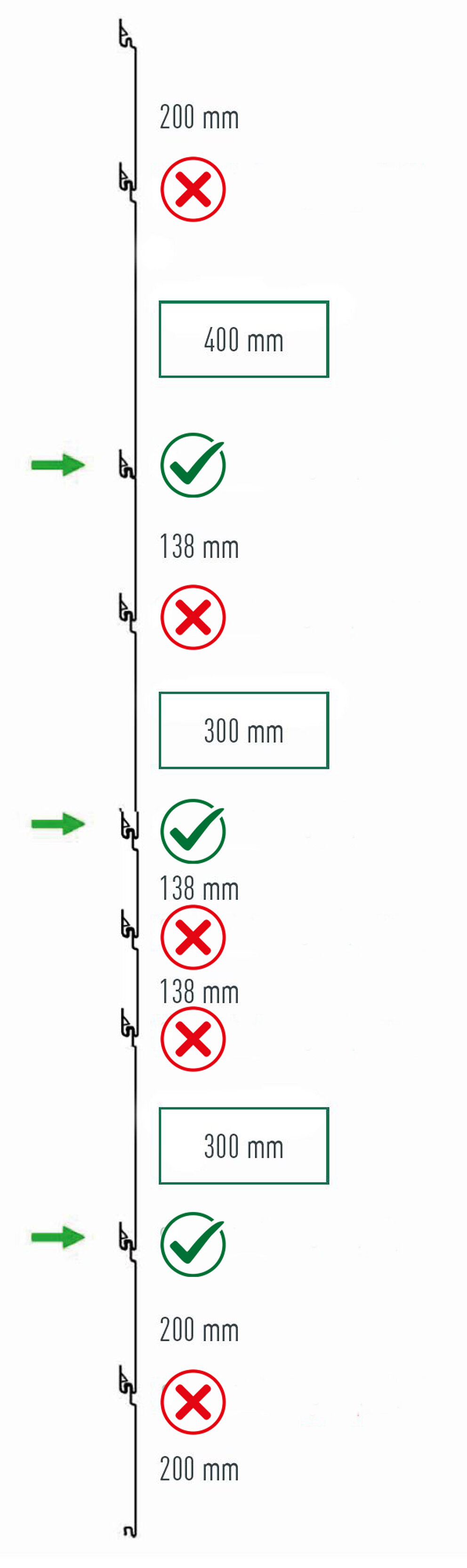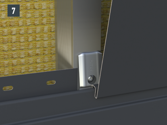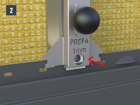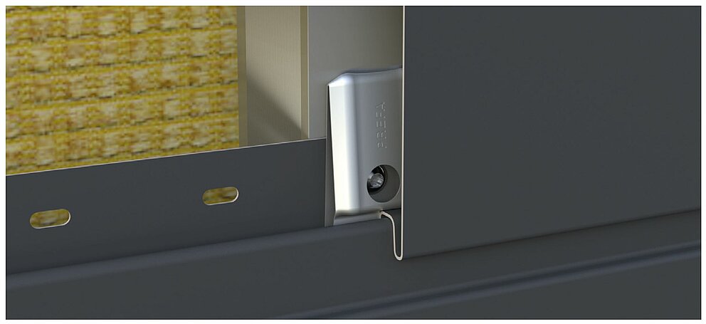 Vzdálenost mezi klipsem – pojistnou příponkou a perem Sidingu je rozhodující pro montáž a dilataci materiálu bez pnutí. Z tohoto důvodu montujte klips – pojistnou příponku výhradně s odpovídající montážní pomůckou, abyste zajistili konstantní vzdálenost.