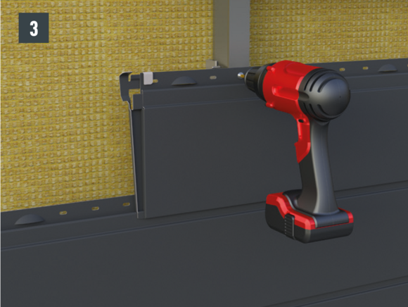 • Siding s předem namontovanou spárou montujte podle pokynů pro pokládku pro Siding a upevněte ke spodní konstrukci (obrázek 3).