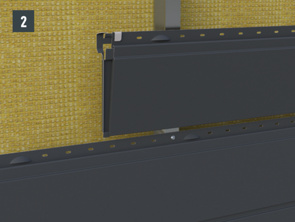 • PREFA spáru zezadu zafixujte k Sidingu pomocí předem ohnutého jazýčku (obrázek 2).