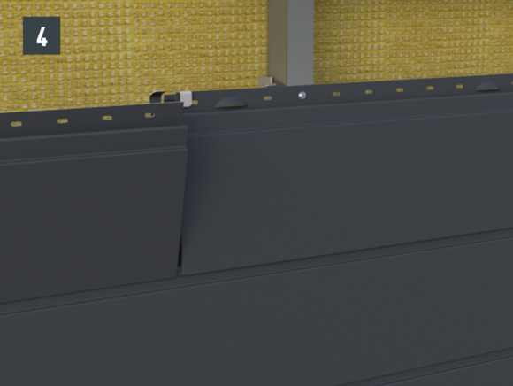 • Umístěte další Siding a zasuňte boční ohranění do PREFA spáry (obrázek 4).