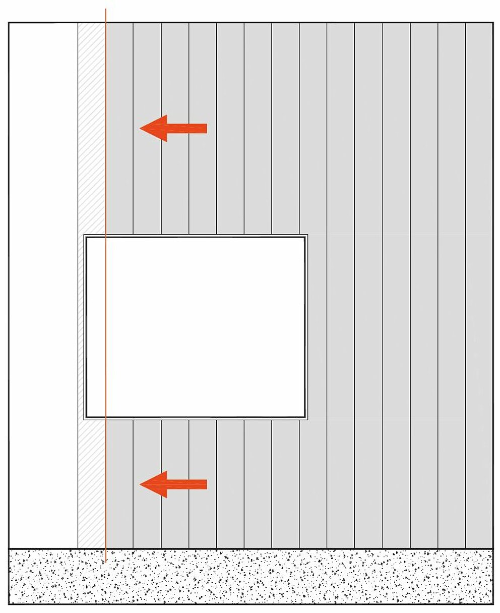 Je vhodné jak při vertikálním, tak i při horizontálním směru vymezit stavební šířku Sidingu okolo okna pomocí provázku, jinak hrozí, že vybočíte z roviny.