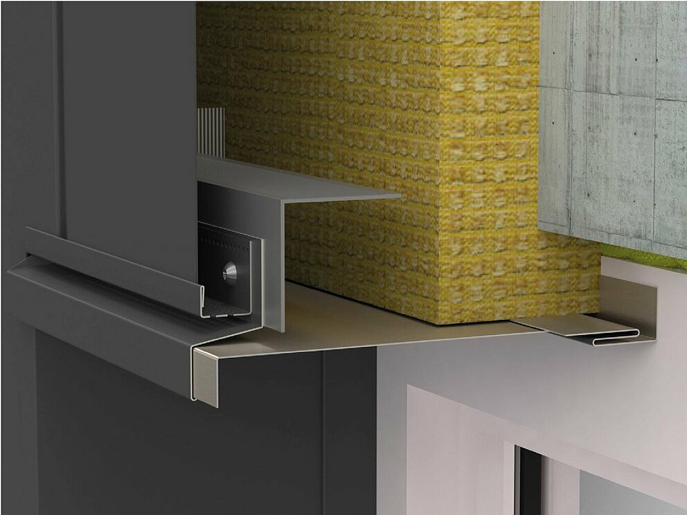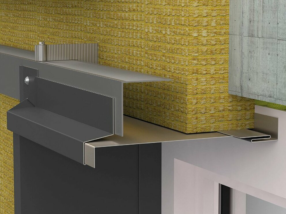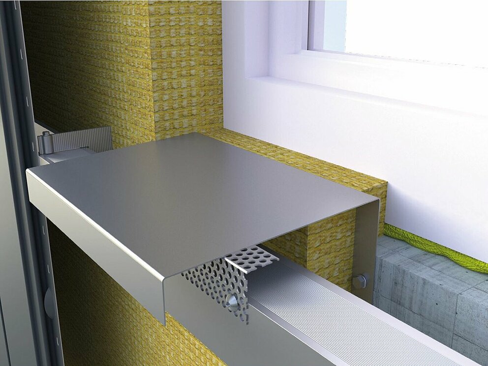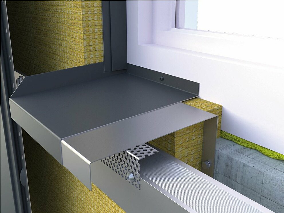Následně lze okenní parapet s ohledem na stavební požadavky zavěsit na upevňovací pásek a namontovat k okennímu rámu. Poté se namontují zasouvací lišty pro boční profil ostění.