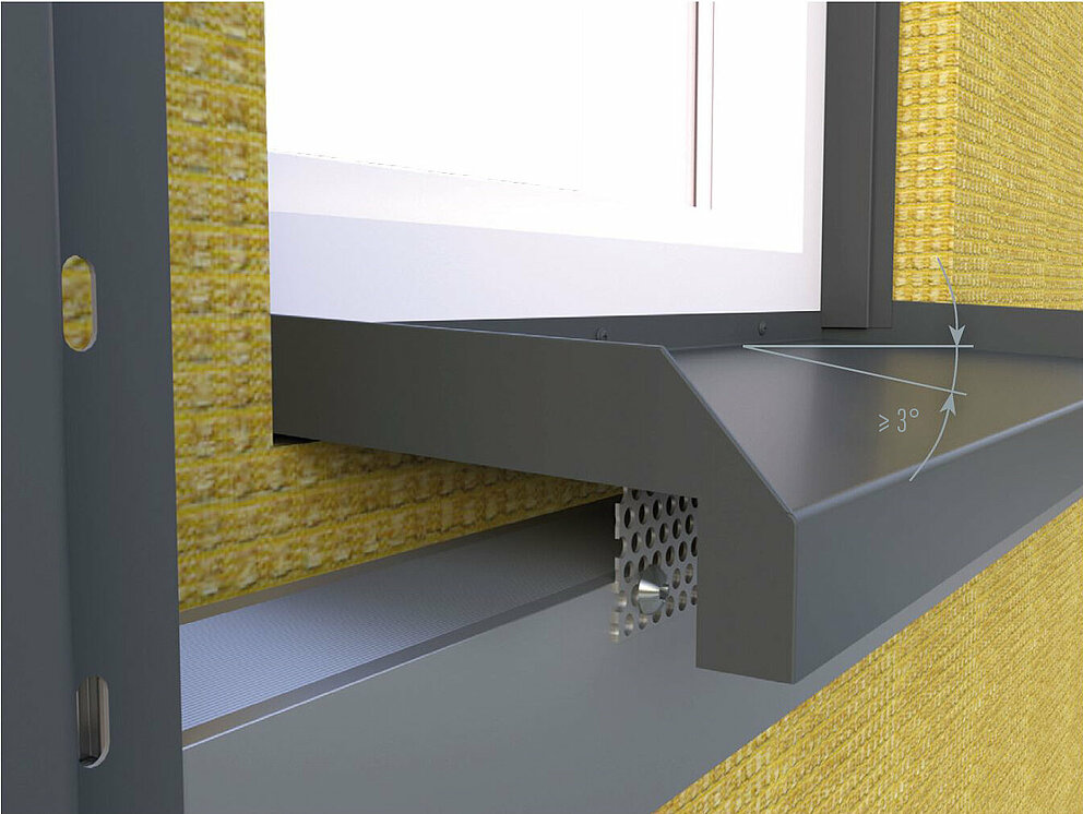 Okenní parapet musí být proveden se spádem minimálně 3°. Dbejte přitom na požadavky platné v dané zemi.