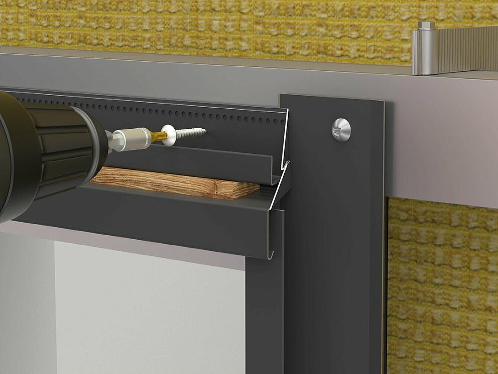 Okapnice se montuje společně s perforovaným ukončovacím profilem na spodní konstrukci. Dbejte na dodržení vzdálenosti 10 mm mezi okapnicí a perforovaným ukončovacím profilem pro optimální přívodní otvor. Pro dosažení přesné rovnoběžnosti se doporučuje použití šablony.