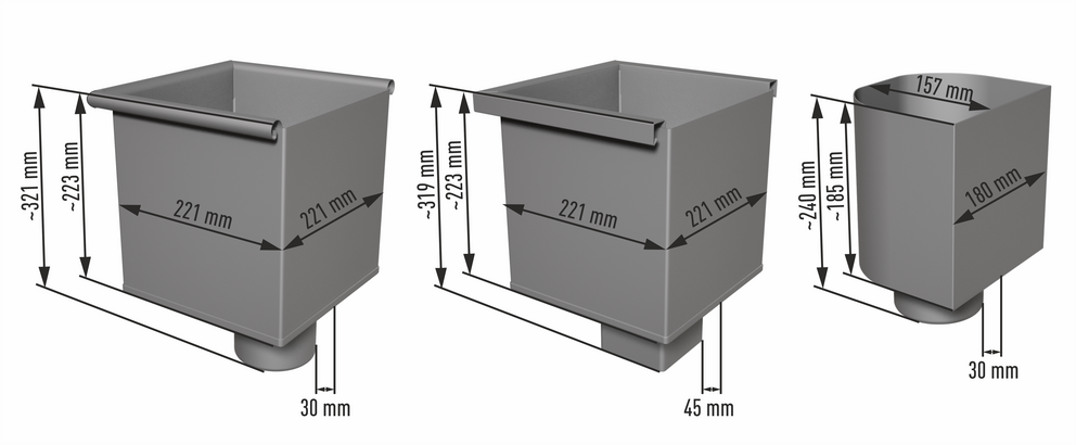 Sběrné kotlíky musí být na fasádu připevněny pomocí vhodných připevňovacích prostředků, které musí být přizpůsobeny příslušnému podkladu.