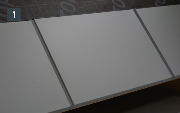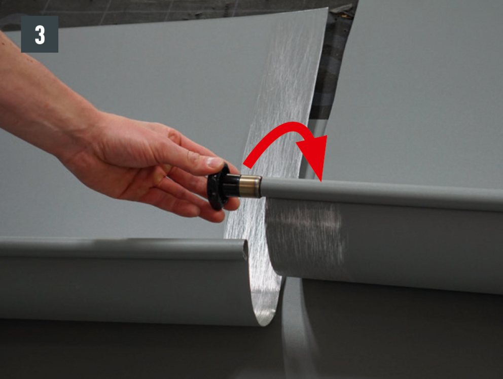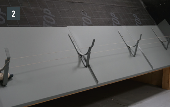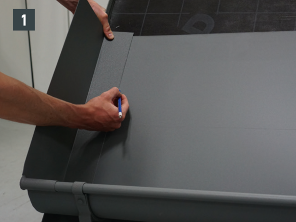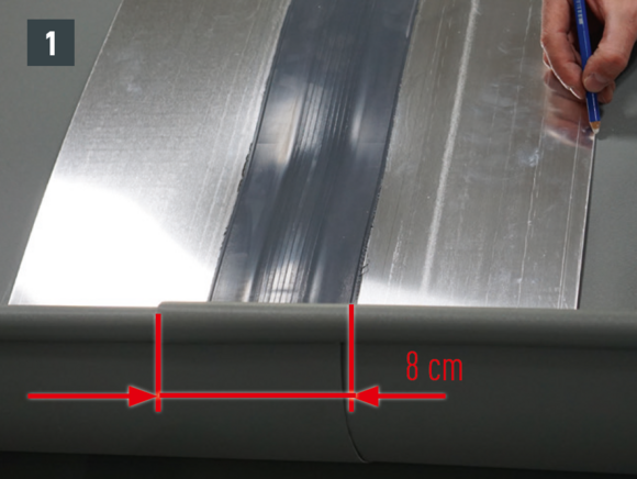 Drážky překládejte tak daleko, aby nástřešní žlab doléhal min. 15 cm na lemovací plech. Respektujte spád.