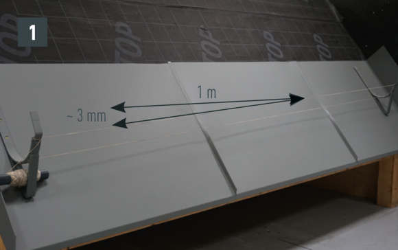 Dbejte, aby zadní přídavná drážka na straně střechy ležela o 10 mm výše než přední strana nástřešního žlabu.