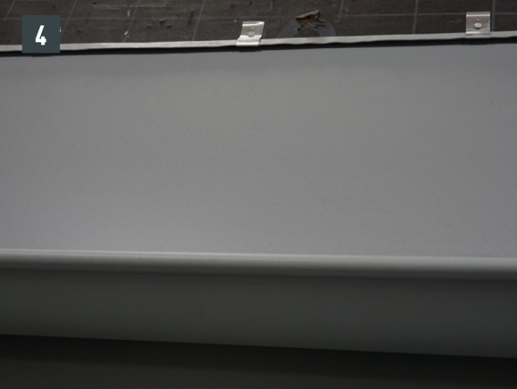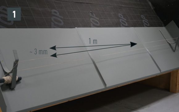 Nástřešní žlab PREFA obecně naplánujte s minimálním spádem 3 mm/m. Ve zvláštních případech však může být nástřešní žlab PREFA naplánován i bez spádu.