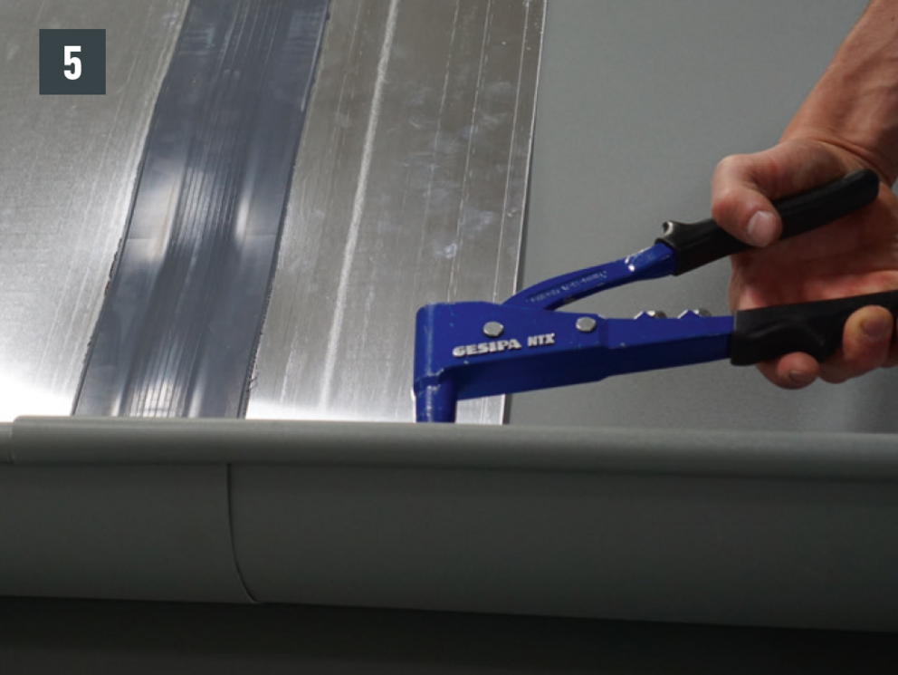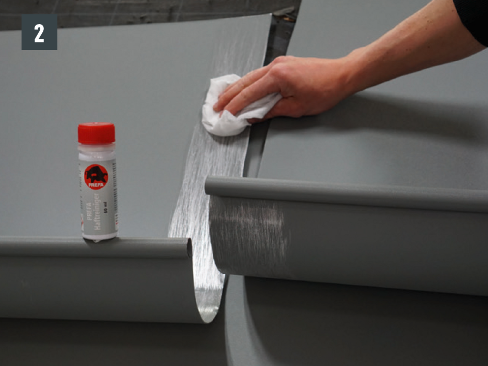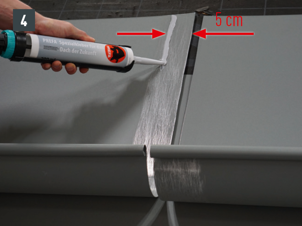 Spojení může být vytvořeno jako lepený nebo nýtovaný spoj. Snýtovaná spojení dodatečně utěsněte speciálním silikonem PREFA.