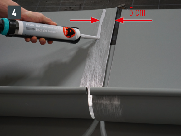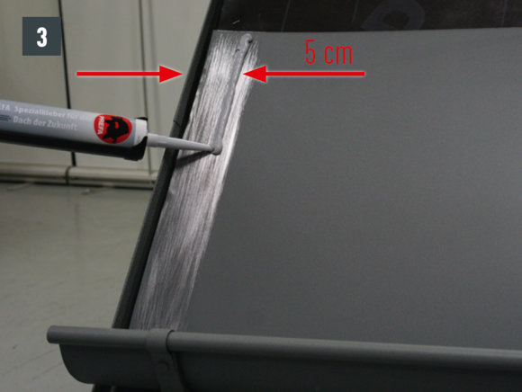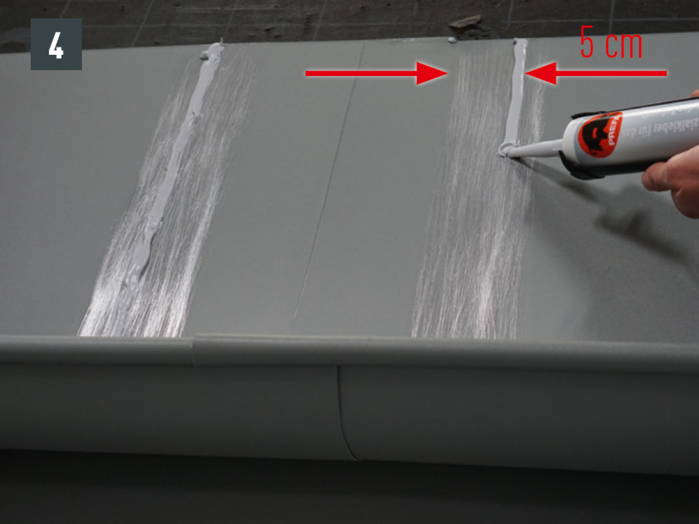 Spojení nástřešního žlabu s 1 kartuší speciálního lepidla
