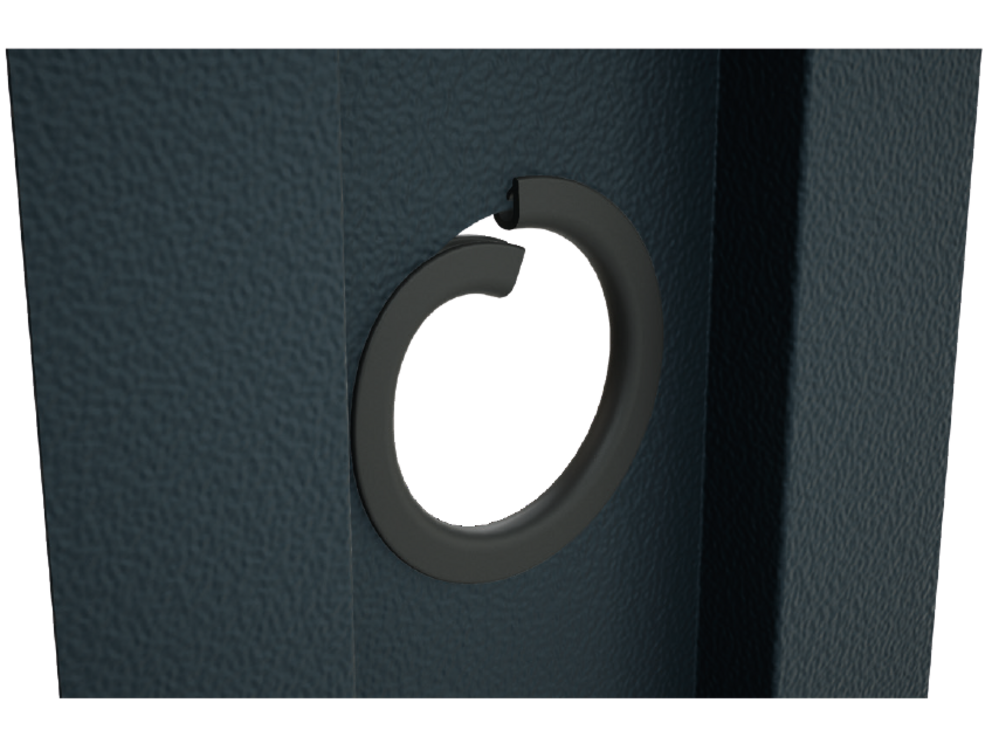 Ochrana hran dodávaná současně s integrovanými solárními panely SDP musí být vložena do otvoru kabelového kanálu vytvořeného vrtákem. Chrání kabely před poškozením o otevřenou hranu plechu. Použitím ochrany hran je zajištěno bezpečné vedení kabelů a zabráněno jejich poškození při pohybu nebo vibracích.
