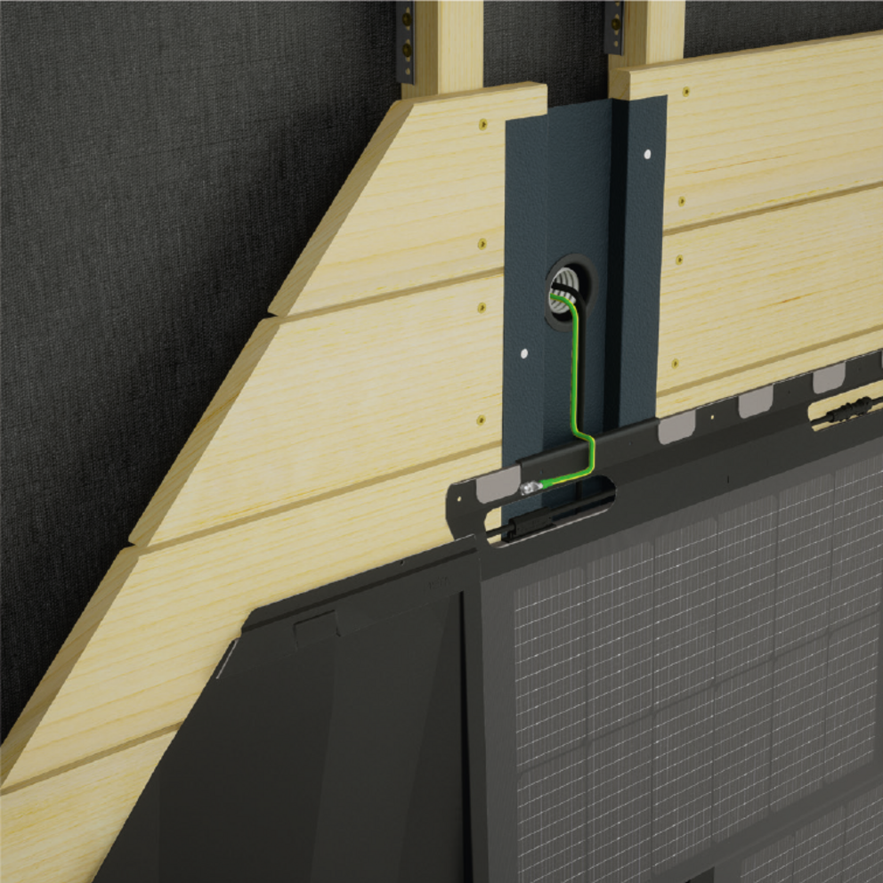 Vložení připojovacího kabelu a montáž kabelu pro vyrovnání potenciálů na integrovaný solární panel SDP s dodaným kotvením.