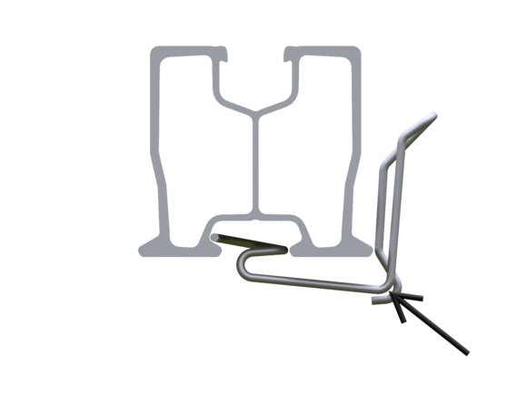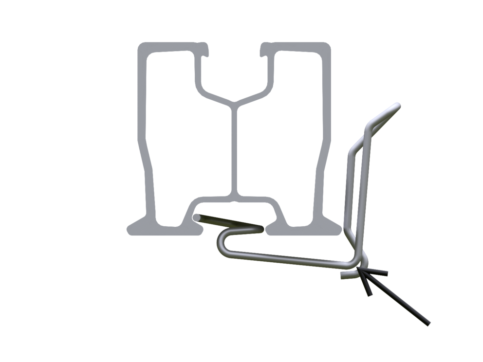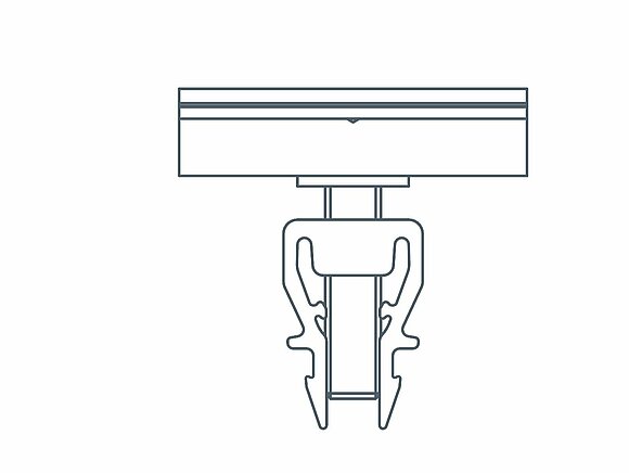 Kabelový klip se nasazuje šikmo zespodu do drážky lišty a zacvakne se do lišty tlakem směřovaným šikmo nahoru.