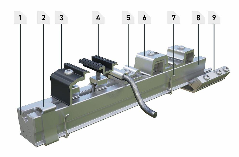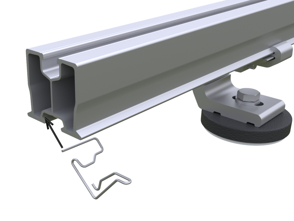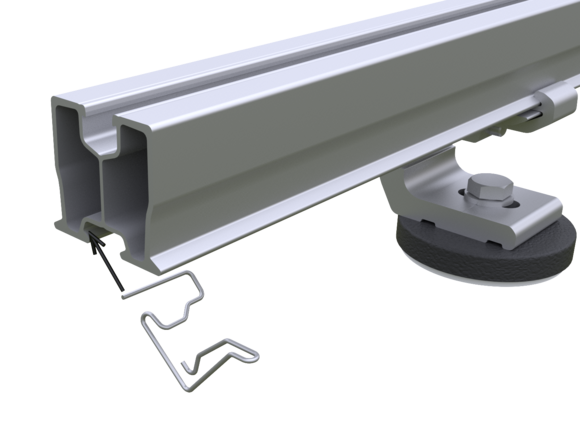 Aby se zabránilo pádu fotovoltaických panelů, jsou v montážním systému k solárním panelům PREVARIO instalovány pojistky proti posunu solárního panelu. V nejspodnější řadě panelů jedné plochy generátoru se přitom na horní lištu panelu upnou dvě pojistky proti posunu solárního panelu na každý panel. To znamená, že horní hrana rámu padajícího modulu zůstane zavěšená za pojistku. Aktivovaná pojistka nepředstavuje trvalou montáž. Dotčené panely musíte ihned vyměnit.