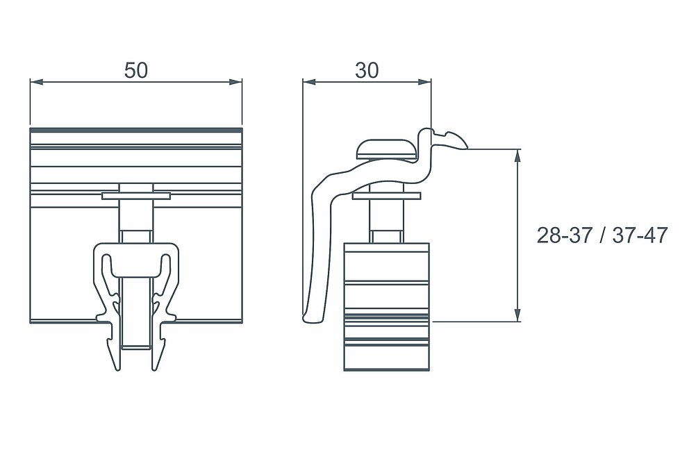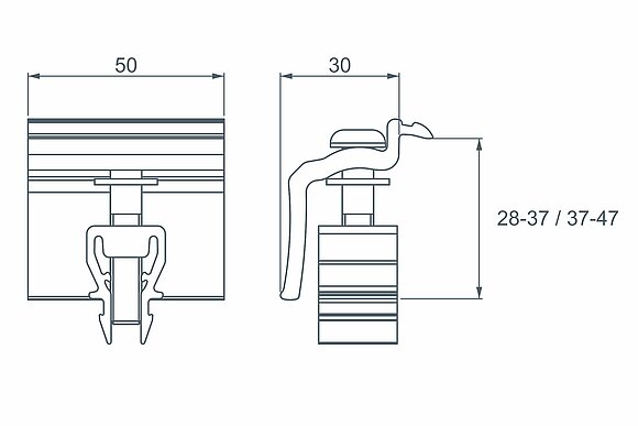 Koncová příchytka 28 - 37 mm, hliník Koncová příchytka 37 - 47 mm, hliník |