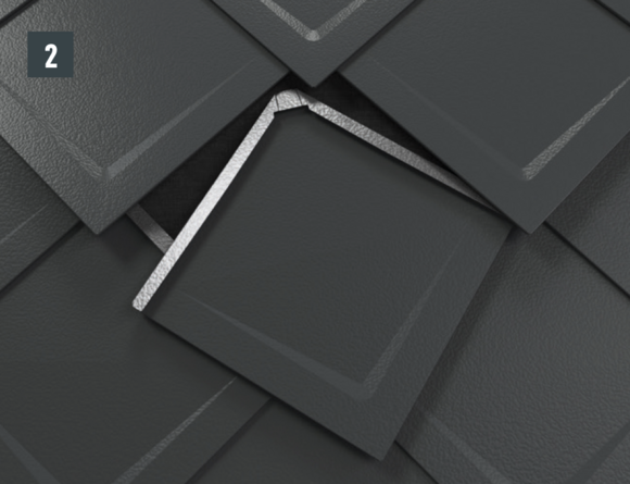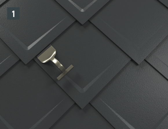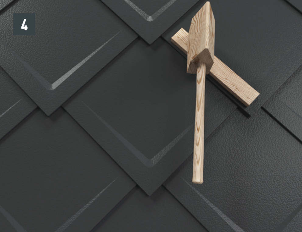 • Pomocí lopatky přeložníku otevřete drážku falcovaného šindele (obr. 1).