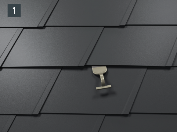 • Uvolněte příponku a vyjměte směrem dolů poškozený šindel DS.19 (obr. 2).