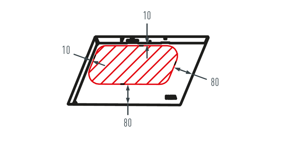 Pokud nelze oblast možného umístění dodržet, je třeba použít nafalcovanou montážní podložku.
