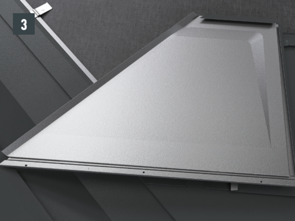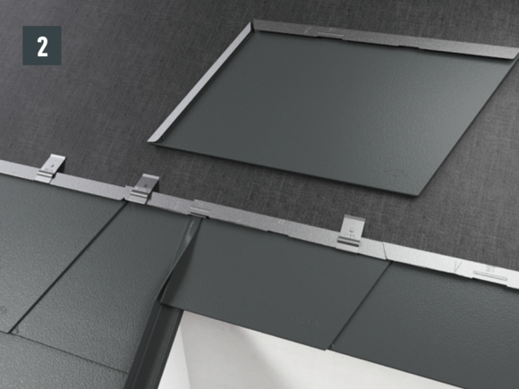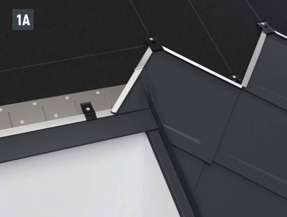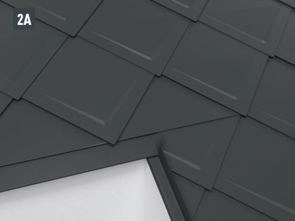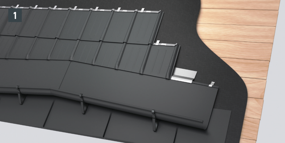 U střešních odskoků s falcovanou šablonou 29 × 29, resp. 44 × 44 je nutné zpravidla zhotovit přizpůsobené oplechování okapní hrany. Díky tomu lze začít se startovací šablonou falcovaná šablona 29 × 29 nebo 44 × 44 (obr. 1A a 1B).
