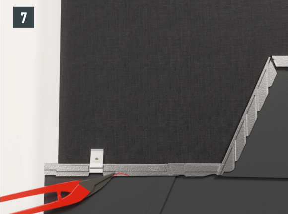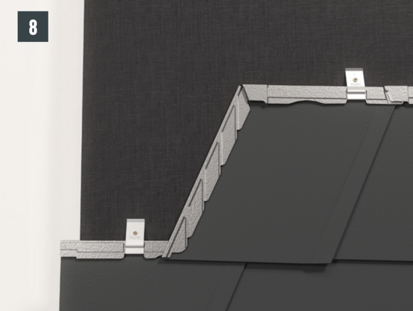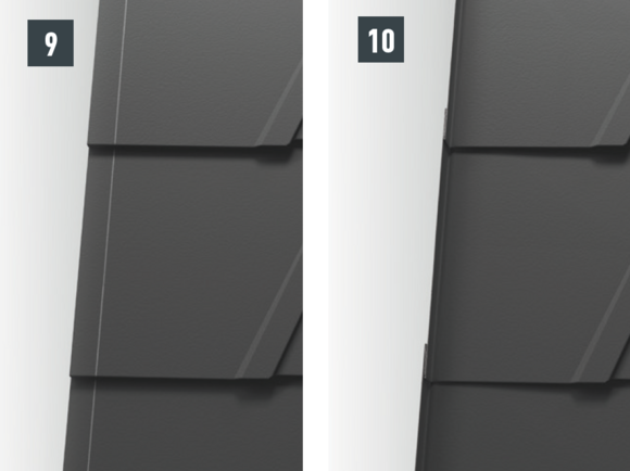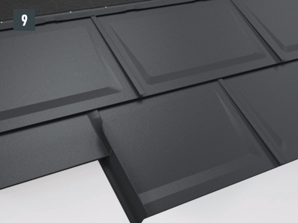 Poslední falcovaný šindel před svislým ohybem zkraťte a položte (obrázek 7 a 8).