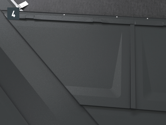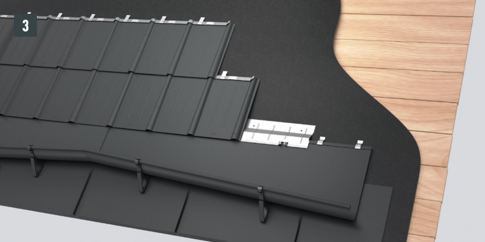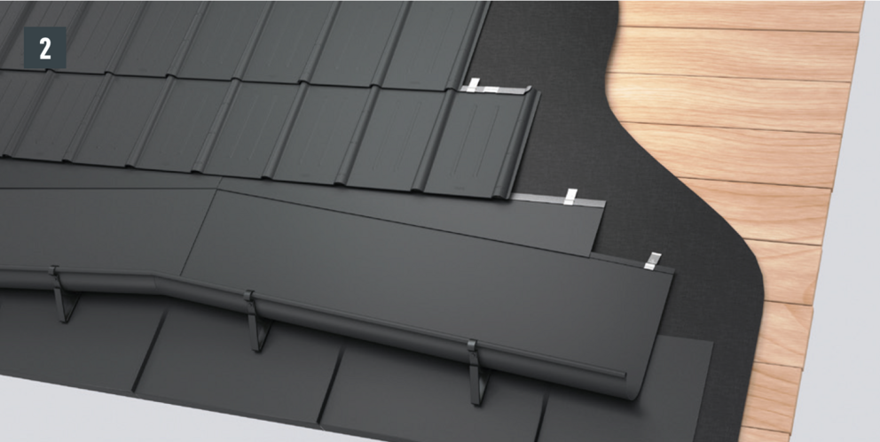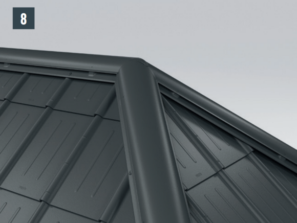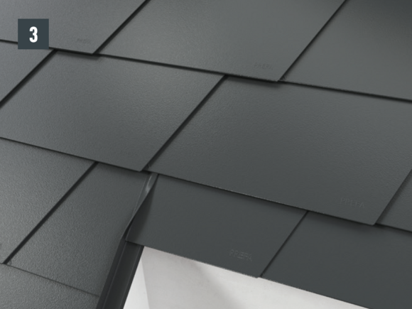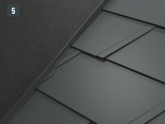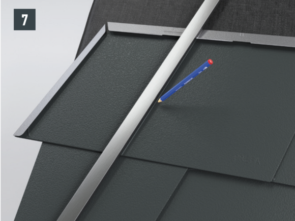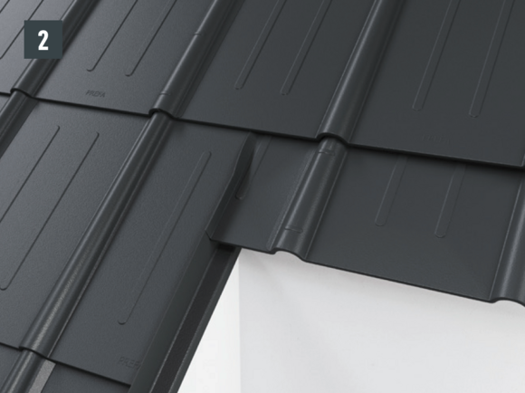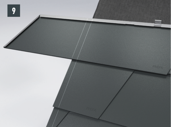 Je-li poslední řada krytiny úzká, lze ji nahradit plechovým pásem PREFALZ.