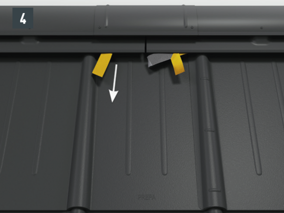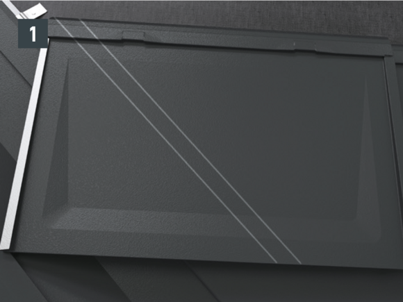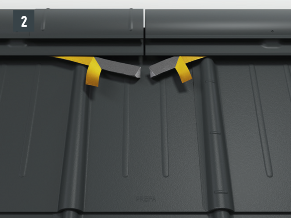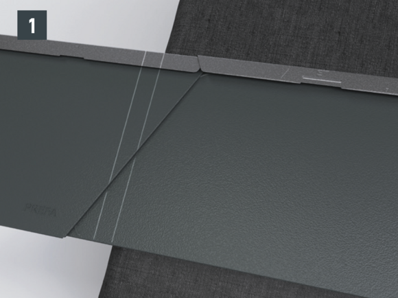 V případě montáže průběžného pásu PREFALZ je u falcovaných šablon 29 × 29 nebo 44 × 44 třeba použít ukončovací (hřebenové) šablony. Ty vytvoří vodorovný závěsný falc.