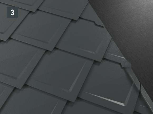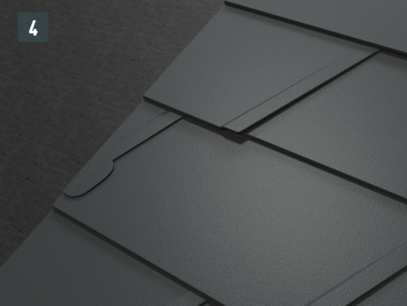 Falcovaný šindel DS.19 pro napojení není určen pro kompletní pokrytí střechy.