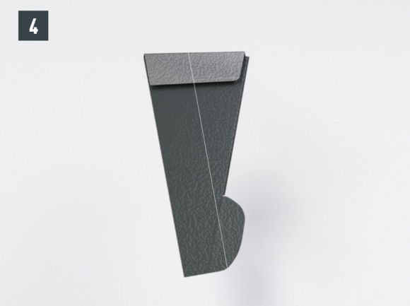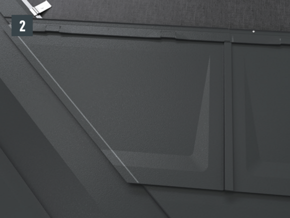 U každého bočního zdvihu falcované šablony 29 × 29 (závětrná lišta a lemování komínu) je nutno drážky směřující šikmo směrem dolů na spodní straně vystřihnout a vyhnout.