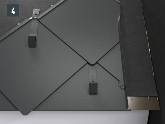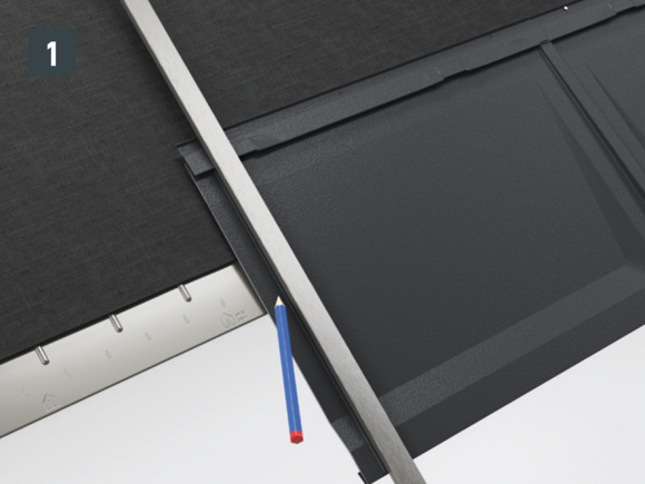 Zarovnejte podkladní pás podle středu střechy pomocí vylisovaných značek pro střešní panel R.16, resp. střešní panel FX.12.