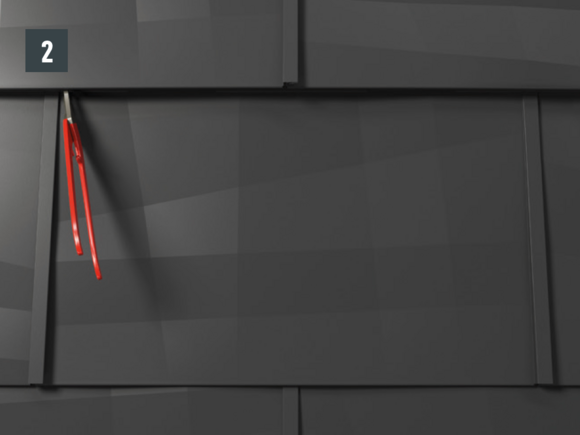 • Odstraňte kotvení a nastřihněte horní patentovanou drážku (obr. 2). Poté panel FX.12 směrem dolů vytáhněte.