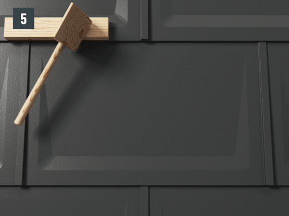 POZOR: Zvolte polohu nových vroubkovaných hřebíků tak, aby nebyly zatlučeny do již existujícího otvoru pro hřebík!