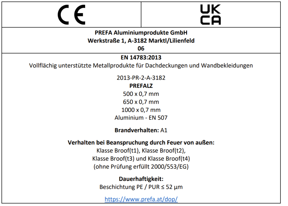 Svitky PREFALZ jsou na vnější straně označeny nálepkou (viz ilustrační obrázek níže).