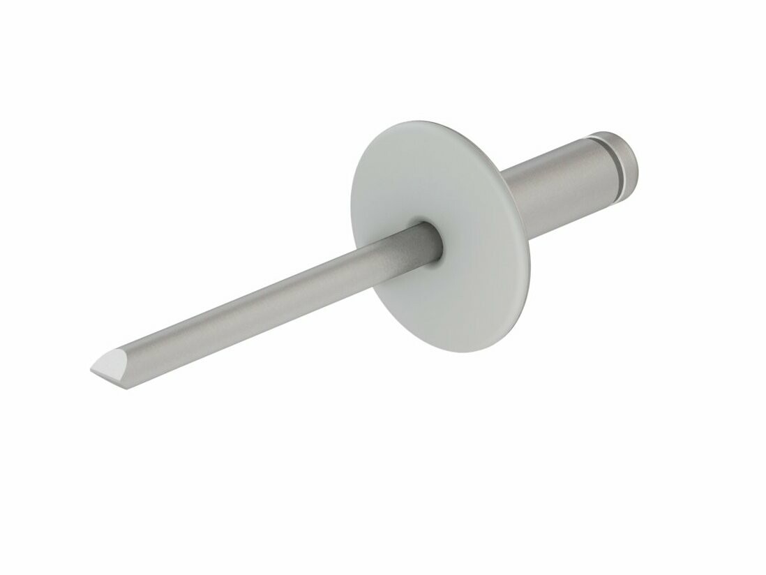 a s průměrem hlavičky 15 mm. Fasádní nýt určený na kotvení obkladových prvků na balkónech je testován v souvislosti se zvýšenými požadavky na bezpečnost proti propadnutí. Spolehlivost byla prokázána nárazovými kyvadlovými zkouškami podle požadavků směrnice ETB (konstrukční součásti chránicí před pádem) a EN 12600:202-11 ve spolupráci s externím zkušebním ústavem.