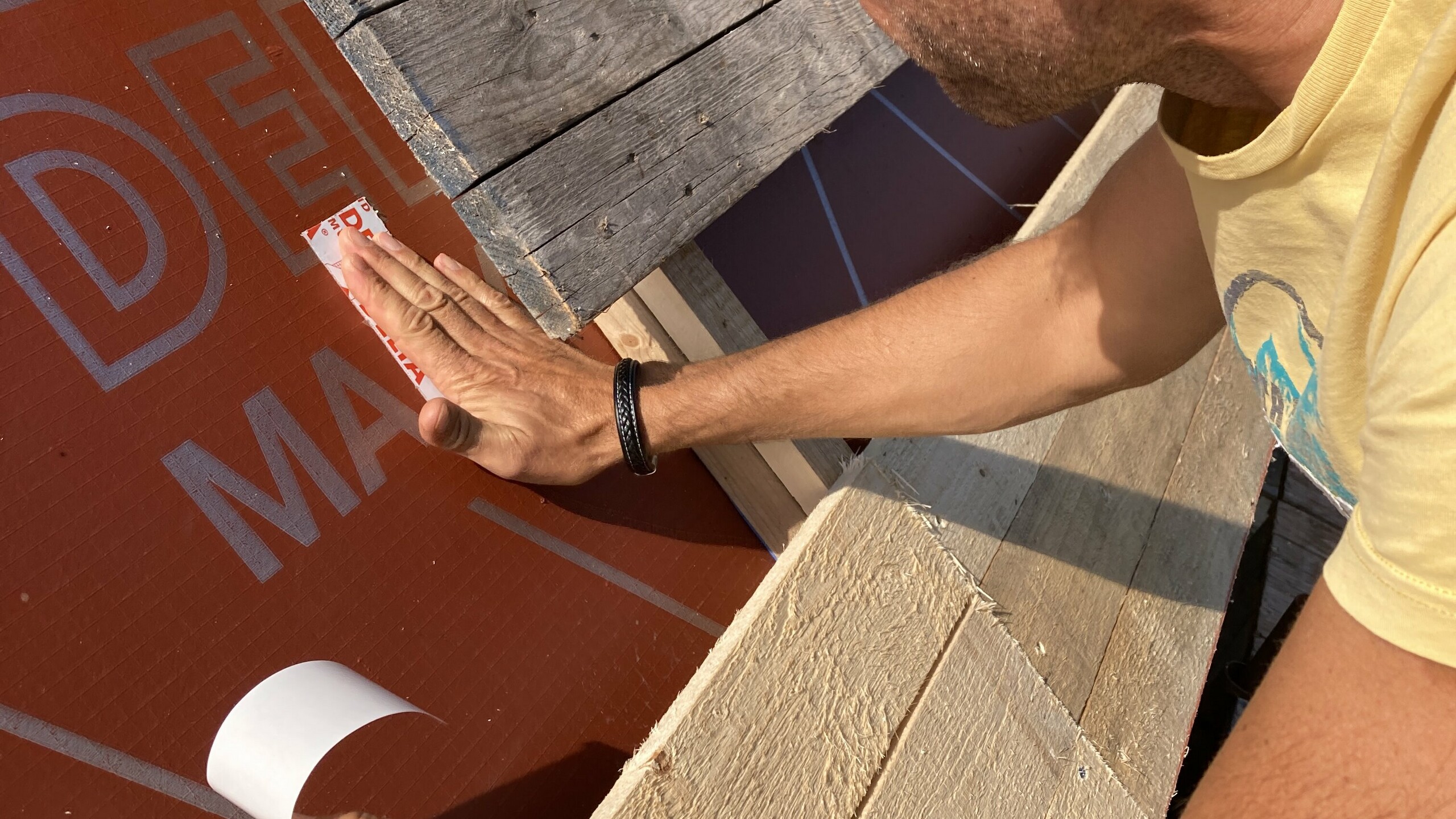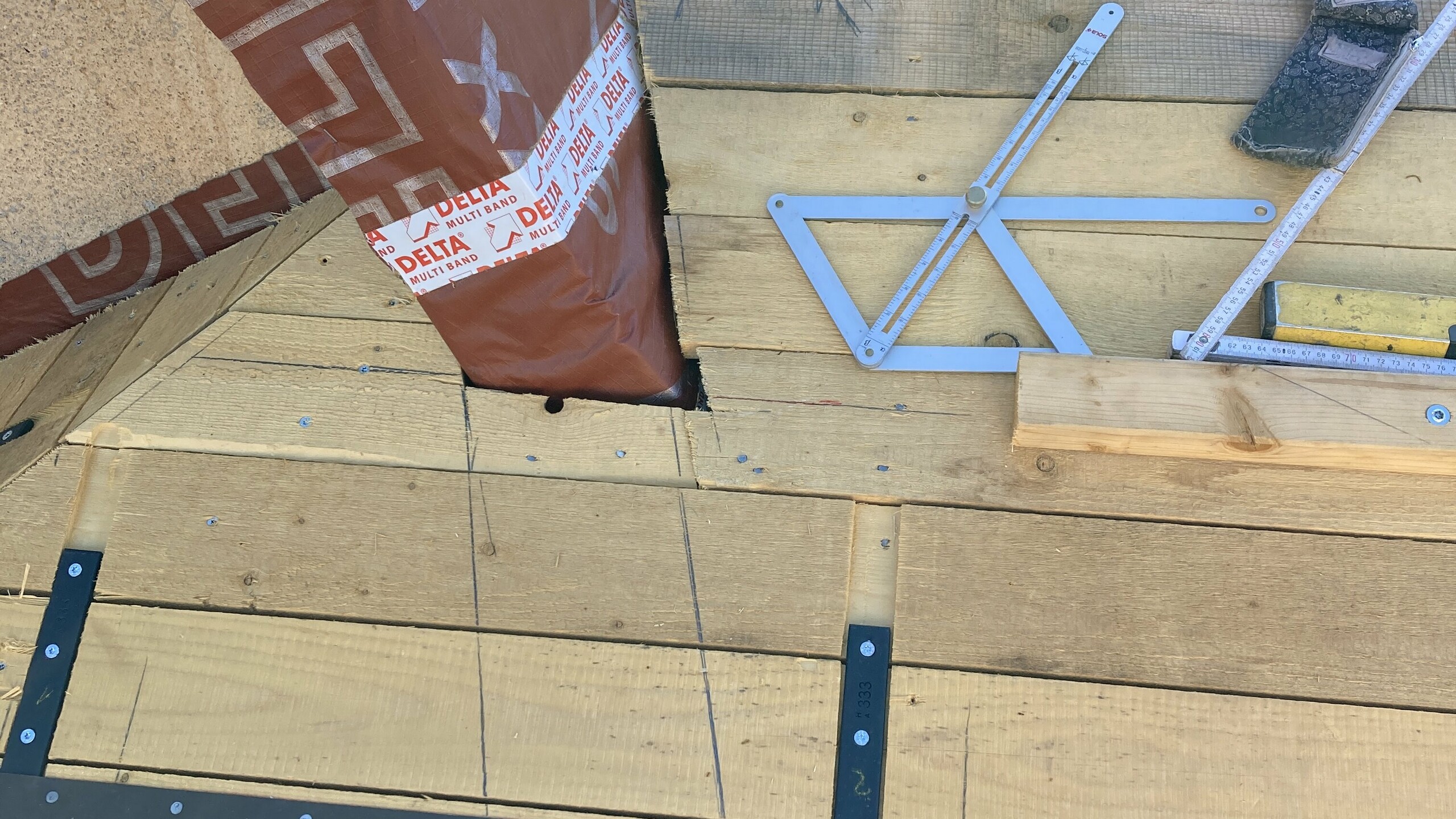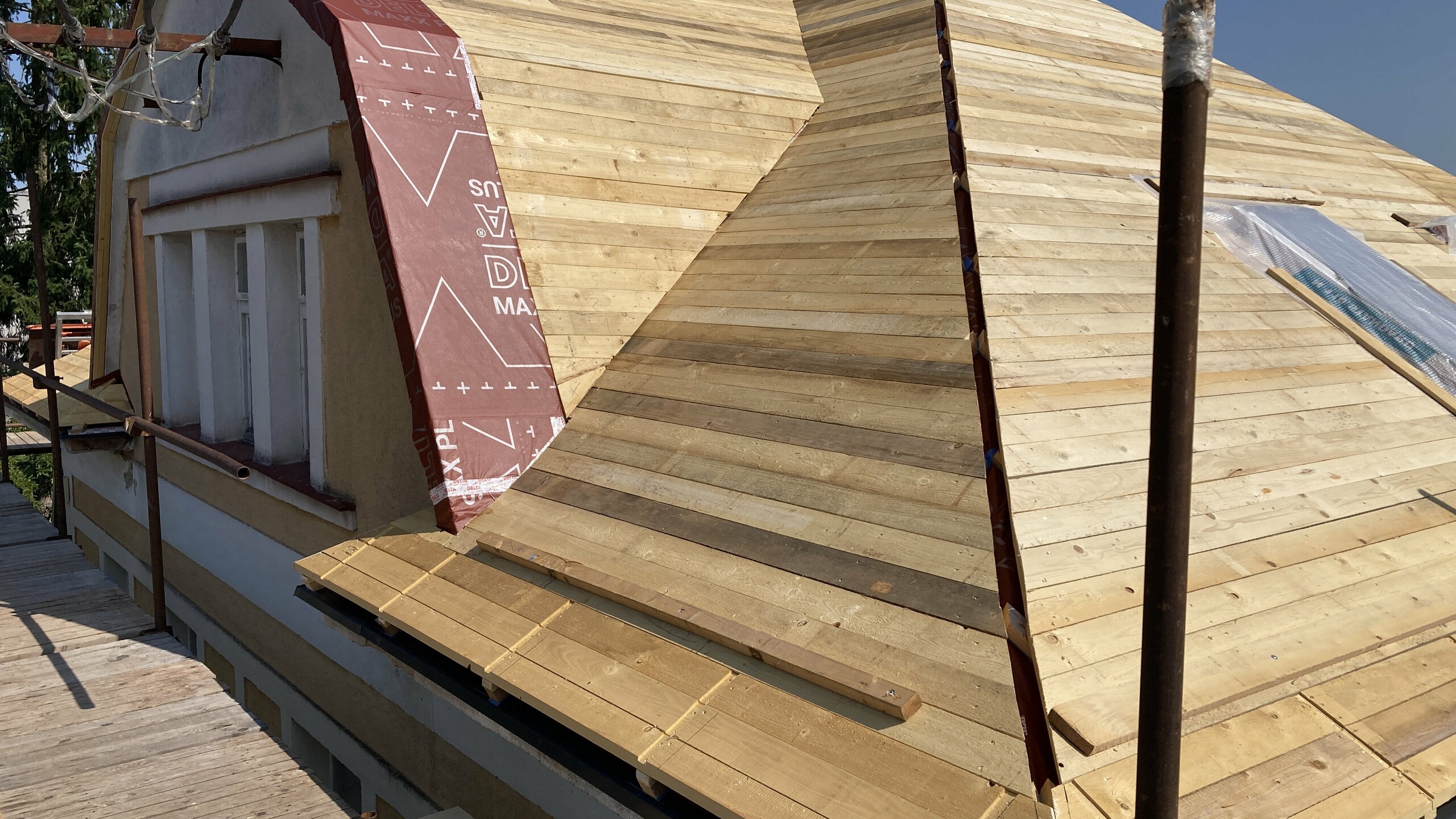 - na prkenném záklopu byla instalována (difúzní fólie Dörken DELTA MAXX Plus)