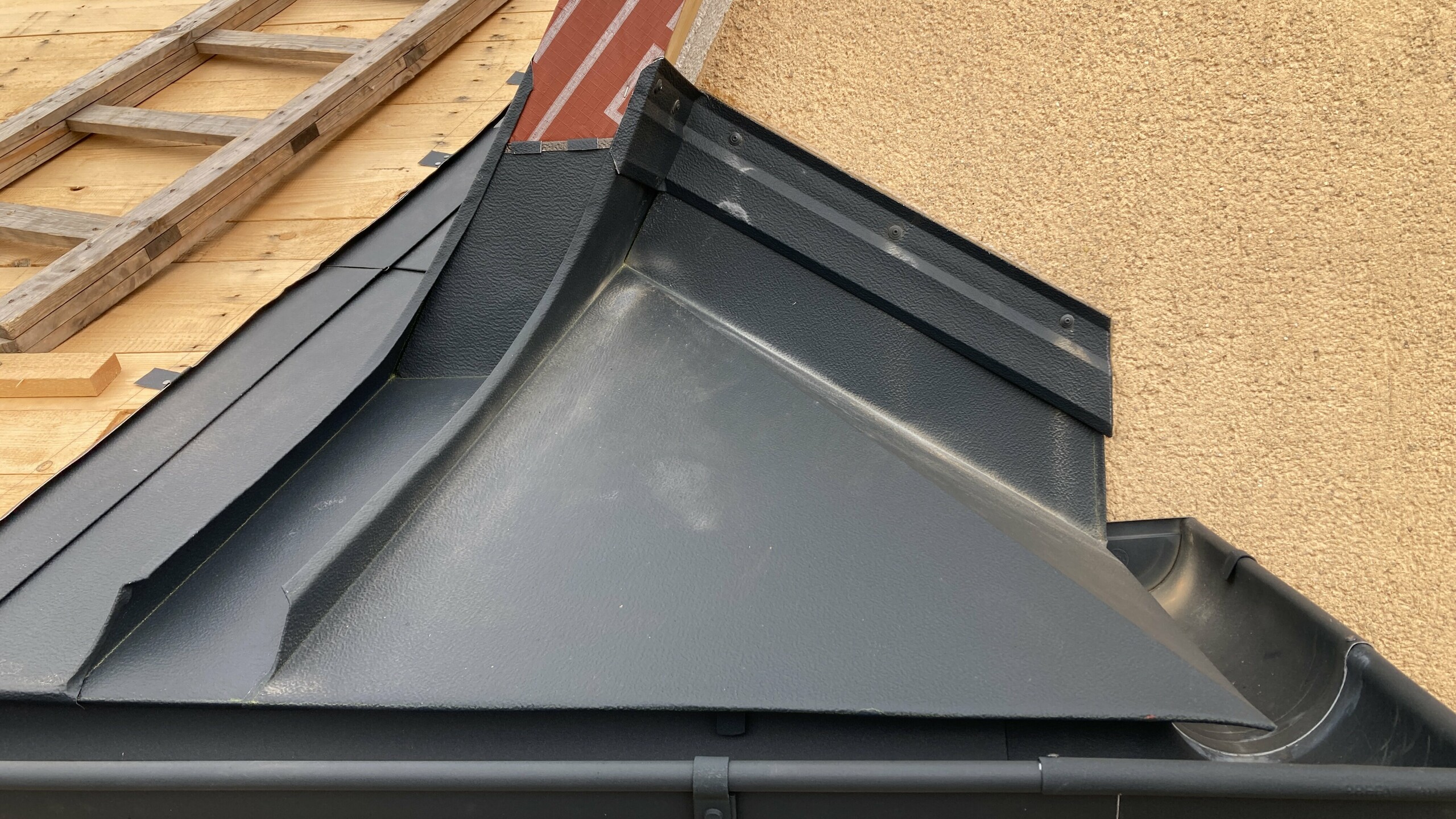 - odvodňovací systém (půlkulatý žlab a kruhový svod) v barvě P.10 antracitové;