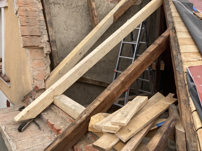 - výměnu degradovaných prvků krovu i těch, které nebyly vhodné pro budoucí obytné podkroví.